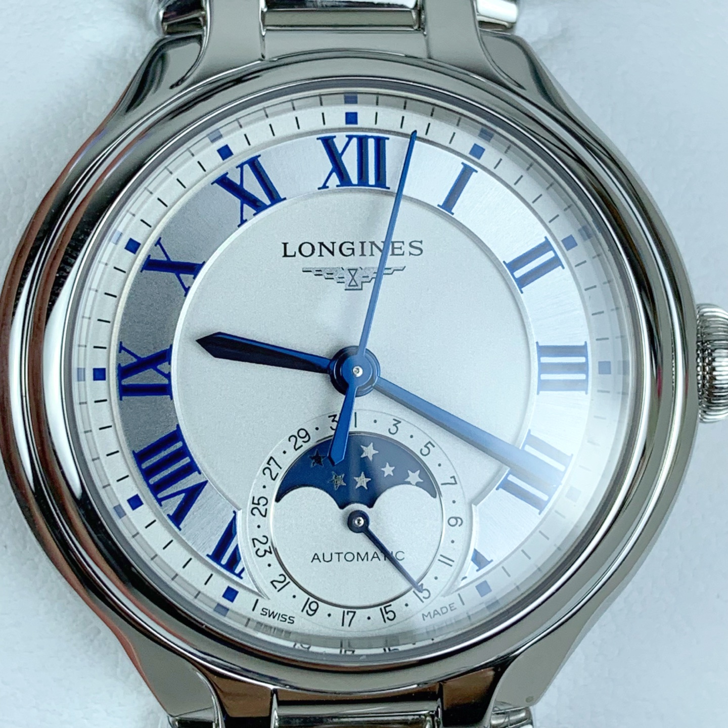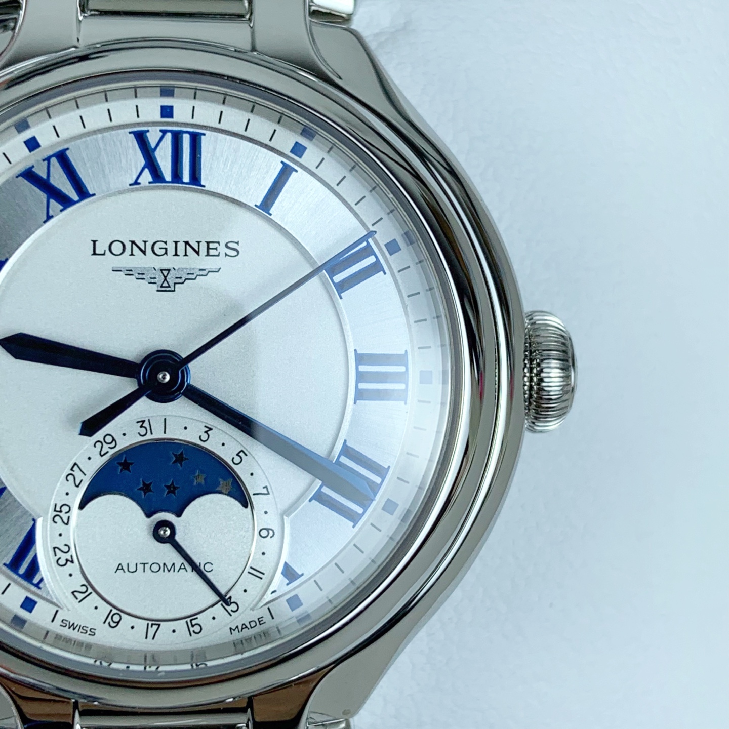 (Super Clone)Longines PrimaLuna Moon Phase Blue Roman Numerals Automatic Mechanical Watch